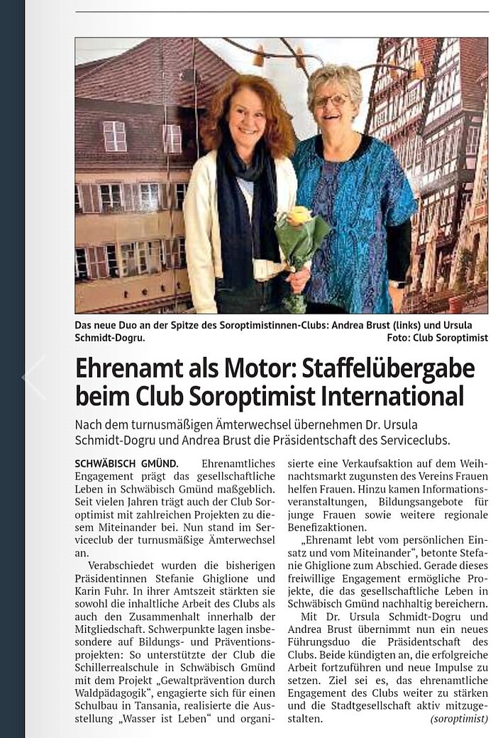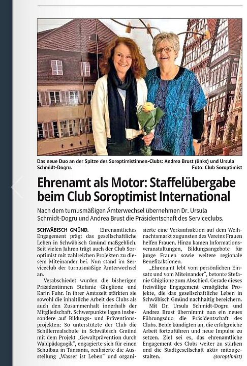 Das neue Duo an der Spitze des Soroptimistinnen-Clubs