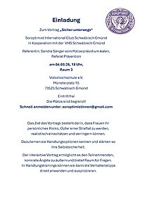 Am 4. März 2026 Vortrag zum Thema „Sicher unterwegs“ , in Kooperation mit der VHS Schwäbisch Gmünd,